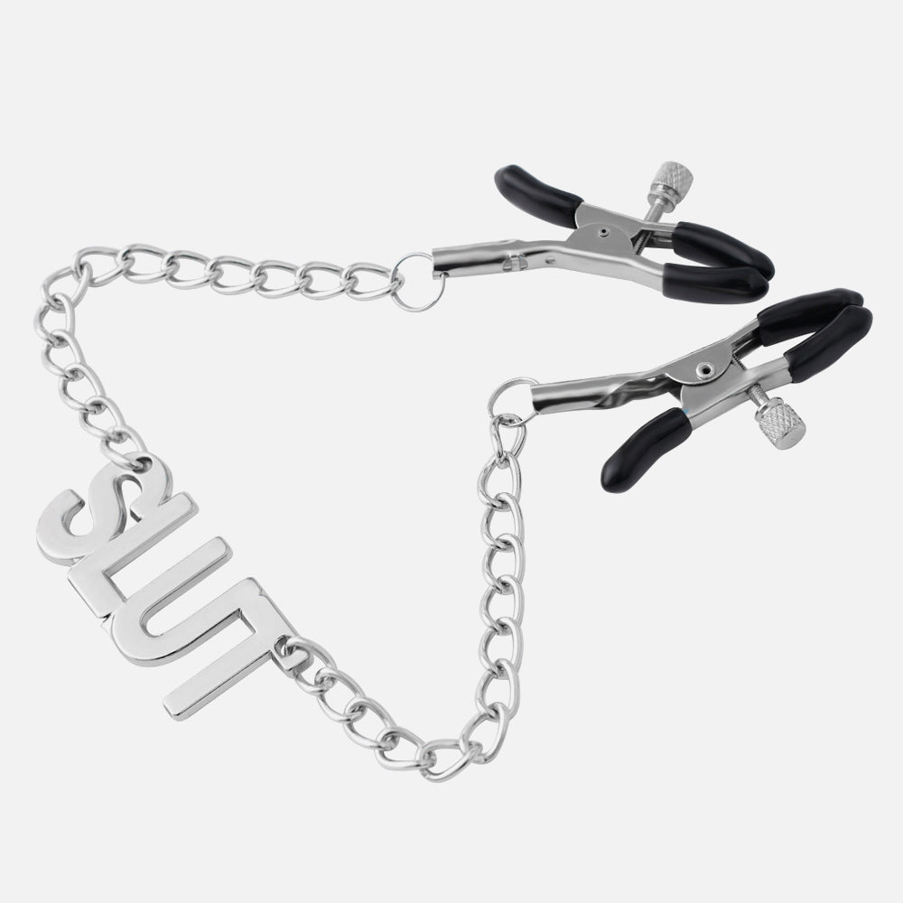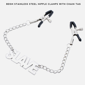 BDSM Stainless Steel Nipple Clamps with Chain Tag