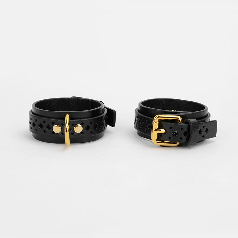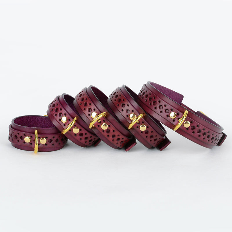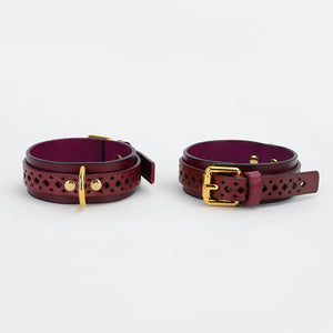Hollow-Out Genuine Leather Restraint Set (5-Piece) with Metallic Chains