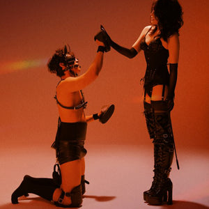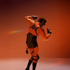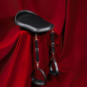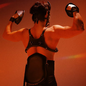Crafted from genuine leather and microfiber, the Stallion Set turns pony play into a living fantasy. The bridle, blindfold, and bit gag fuse elegance with control. The chest harness and saddle belt sculpt perfect form, while padded hoof gloves and knee guards keep him grounded, ready to serve. Every strap, every buckle, built for precision, dominance, and obedience.