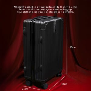 All neatly packed in a travel suitcase (42 × 25 × 65 cm) check-in luggage size. Discreet and sleek, it’s ready to travel wherever desire leads.